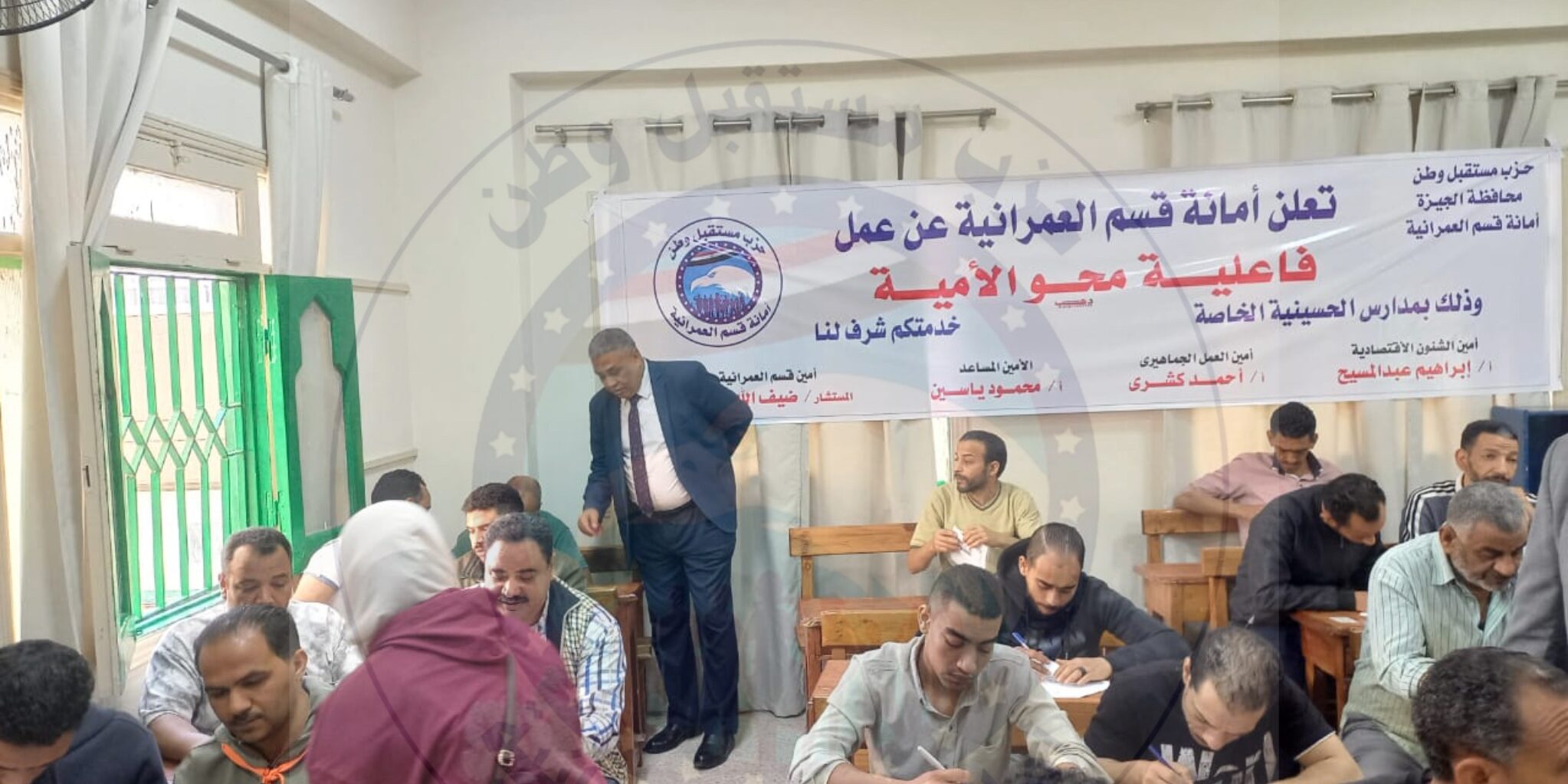 نظمت أمانة حزب مستقبل وطن بقسم العمرانية فعالية تعليمية موسعة لمحو الأمية وتعليم الكبار وذلك بمدرسة الحسينية التابعة لإدارة العمرانية التعليمية في إطار سلسلة من المبادرات المجتمعية التي ينفذها الحزب.
